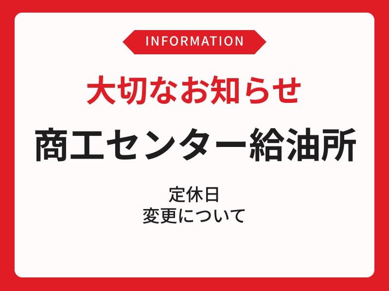 【大切なお知らせ】商工センター給油所定休日変更 2025/10/01〜
