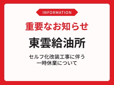 東雲給油所セルフ化改装工事に伴う一時休業について 12月31日(水)まで営業